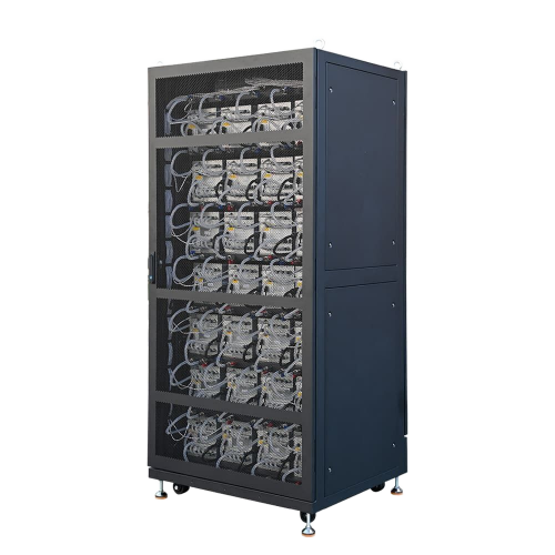 - Максимальная плотность размещения — 28 слотов в одной стойке (4 майнера × 7 уровней) позволяют достичь беспрецедентной вычислительной плотности на квадратный метр помещения.